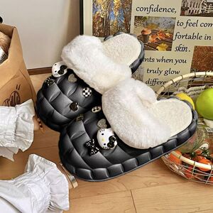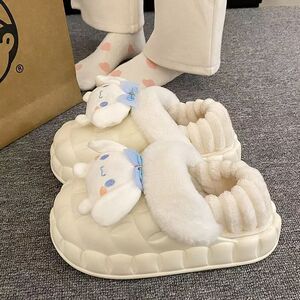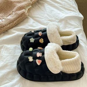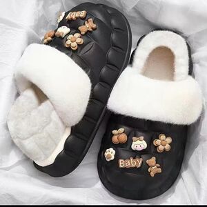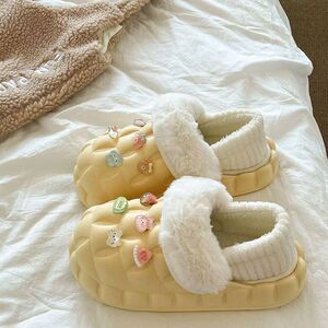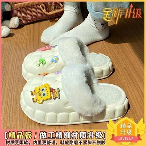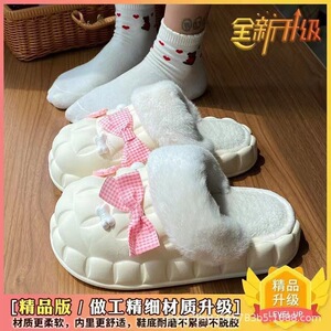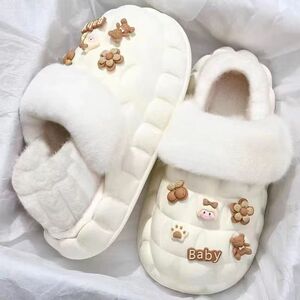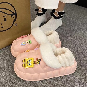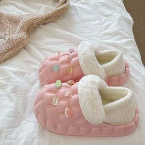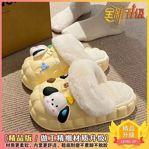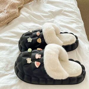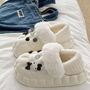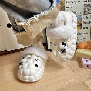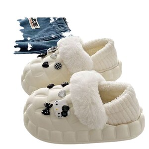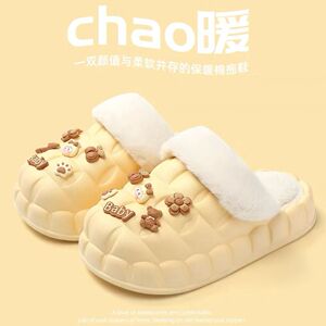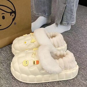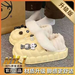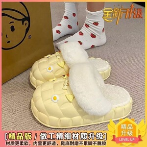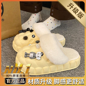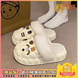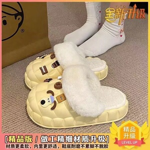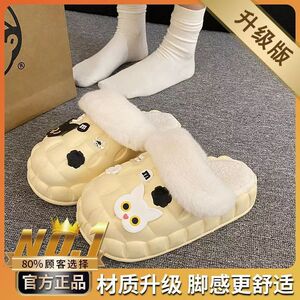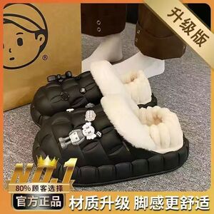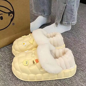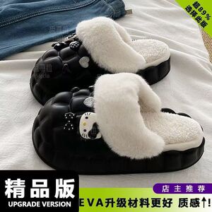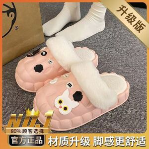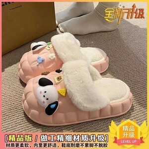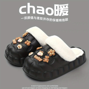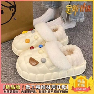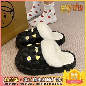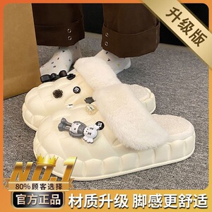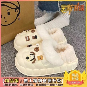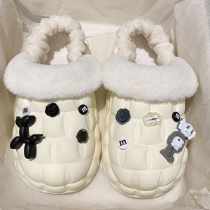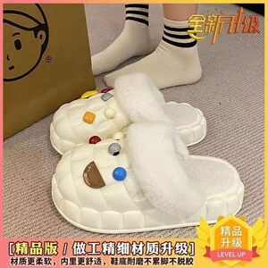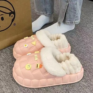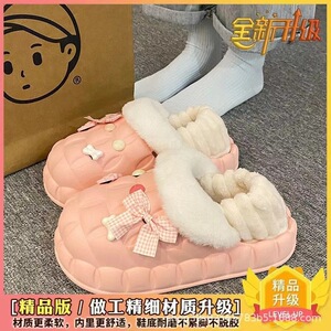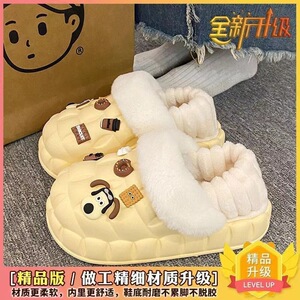 一脚蹬棉鞋加绒女士冬款保暖全包棉拖鞋可爱卡通DIY拆卸防水毛