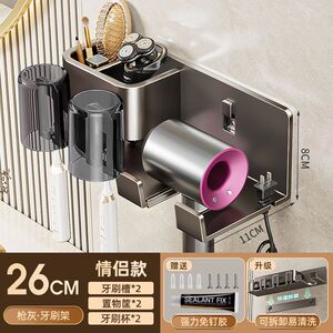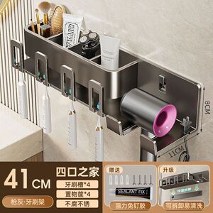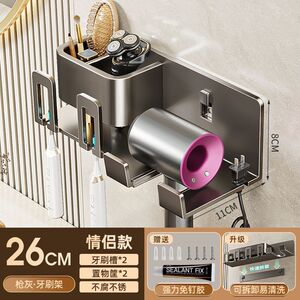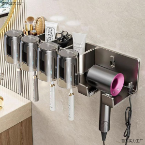 厂家供应牙刷架置物架免打孔漱口杯吹风机一体卫生间壁挂置物架