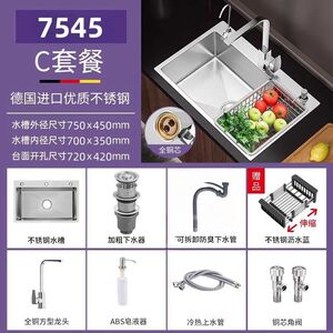 套餐D【304铜芯抽拉龙头】保质10年-银色-外形【长75宽45深20】保质30年