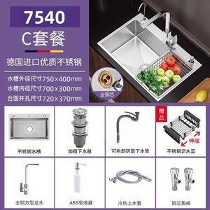 套餐D【304铜芯抽拉龙头】保质10年-银色-外形【长72宽40深20】保质30年
