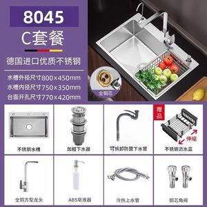 基础A【水槽+防臭下水+沥水篮】-银色-外形【长80宽45深20】保质30年