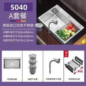 基础A【水槽+防臭下水+沥水篮】-银色-外形【长50宽40深20】保质30年