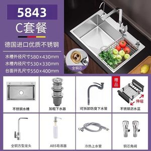 套餐D【304铜芯抽拉龙头】保质10年-银色-外形【长58宽43深20】保质30年