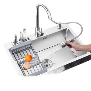 套餐D【304铜芯抽拉龙头】保质10年-银色-外形【长60宽40深20】保质30年