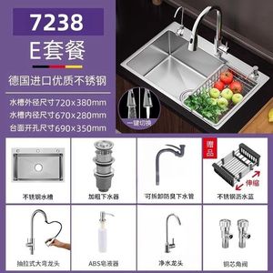 基础A【水槽+防臭下水+沥水篮】-银色-外形【长72宽38深20】保质30年