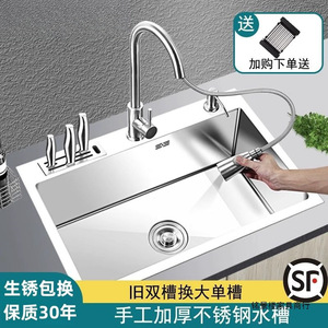 厨房水槽不锈钢手工拉丝加厚单槽家用洗菜盆洗碗槽水池台下盆