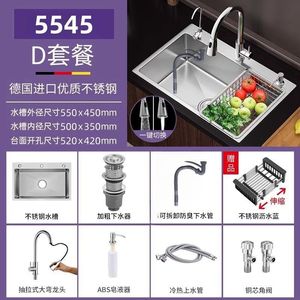 套餐D【304铜芯抽拉龙头】保质10年-银色-外形【长55宽45深20】保质30年