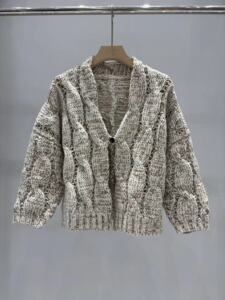 2025早秋羊毛羊绒扭花针织衫秋冬保暖新款上衣长袖外套