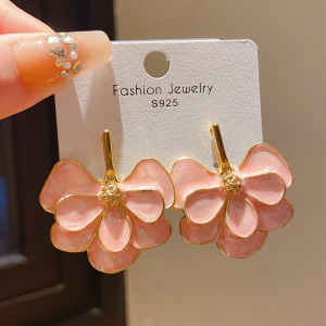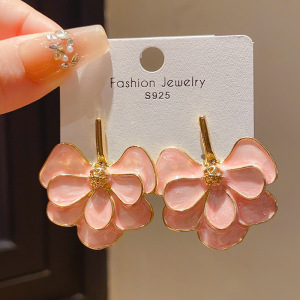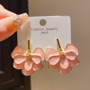 银针滴油银杏叶花朵双层耳环法式甜美时尚耳钉小众高级感气质耳饰