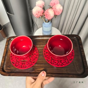 ★☆祥云敬茶杯一套【杯2个+喜字垫2个+托盘1个】★☆
