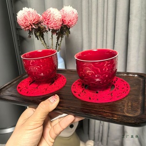 ★☆祥云敬茶杯一对【杯2个+喜字垫2个】★☆