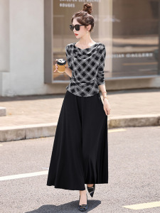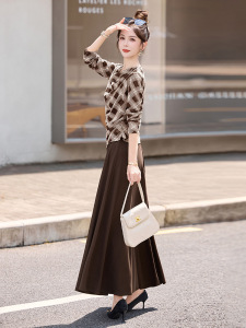 设计感格纹撞色套装裙女2025春秋新款名媛风优雅气质半身裙两件套