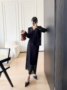 南油原创高品质女装2025新款法式浪漫风白色蕾丝V领套装时尚百搭