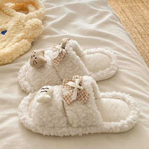 高颜值冬季可外穿舒适休闲棉拖鞋卡通久穿不累脚保暖一字毛毛棉拖