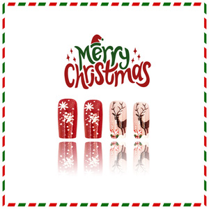 跨境圣诞节新款圣诞树麋鹿红白拼色穿戴甲可拆卸假指甲中方