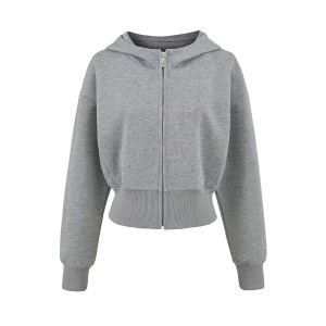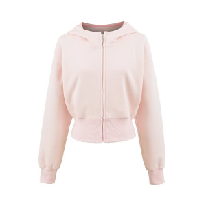 粉色运动短款连帽卫衣拉链外套女新款秋季宽松慵懒风韩系百搭上衣