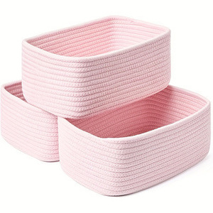 跨境热销棉线绳编织收纳筐长方形大容量储物篮桌面玩具水果收纳筐