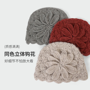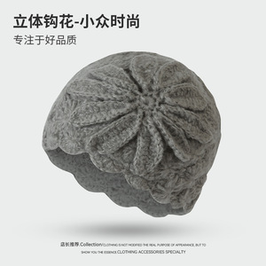 亚马逊秋冬季花朵针织帽百搭休闲帽子时尚个性小众立体钩花套头帽