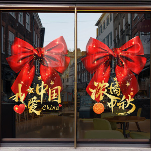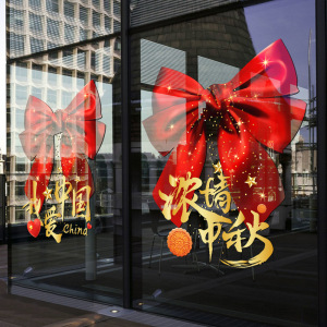 中秋节国庆节静电窗贴贴纸双面现代窗花玻璃橱窗门贴装饰窗花贴画