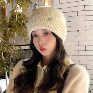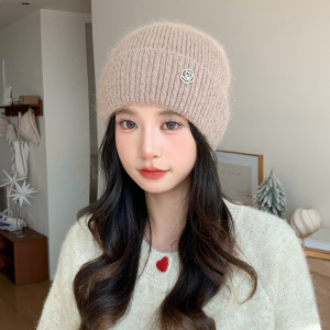 2025新款冬季帽子女韩系时尚百搭保暖帽纯色加厚毛线帽大头围护耳