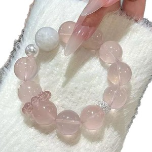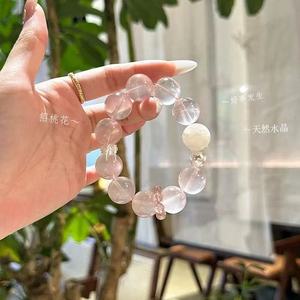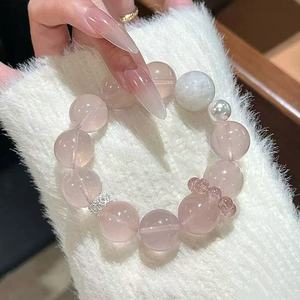 天然粉水晶手串闺蜜同款甜美温柔搭配雪花幽灵手链草莓晶跑环手饰