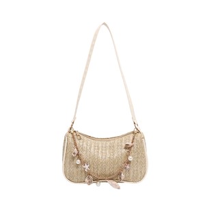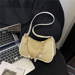 时尚潮流贝壳珍珠草编腋下包2025休闲百搭通勤包小众高级感单肩包