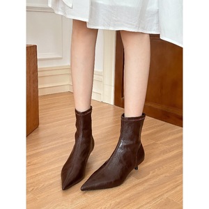 舒服好穿!复古棕色软皮猫跟短靴女秋季新款小矮跟靴