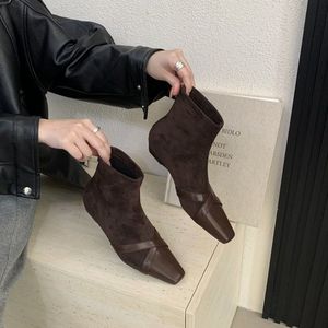 2025年秋冬新款复古小短靴女韩系辣妹显瘦洋气方头瘦瘦靴小踝靴女
