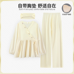 【送发带】纯棉月子服10-11月份产妇带胸垫哺乳期孕妇睡衣秋冬款
