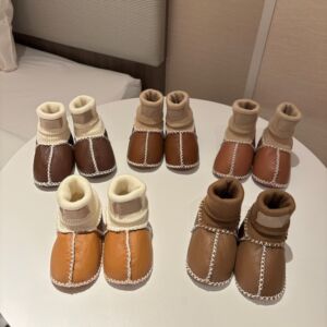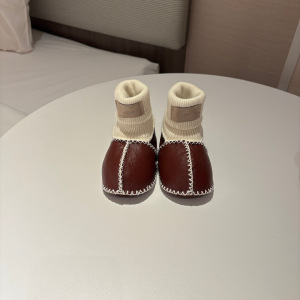 桑坡纯色羊皮毛一体宝宝棉鞋婴幼儿鞋室内步前鞋袜软底男宝女宝