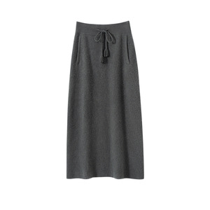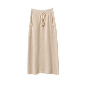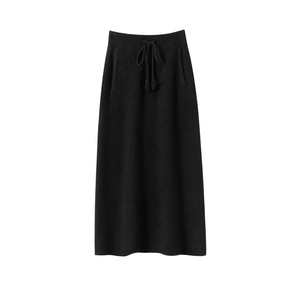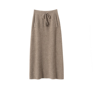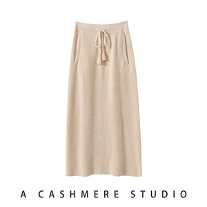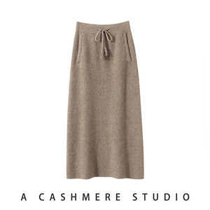 女式山羊绒半身裙秋冬新款抽绳双兜设计毛绒裙子修身显瘦直筒中裙