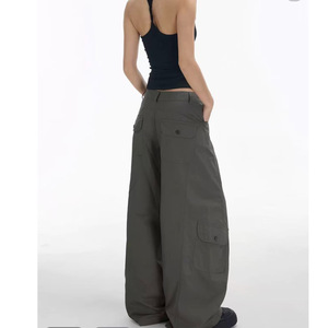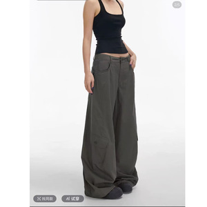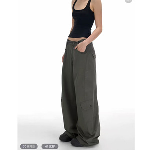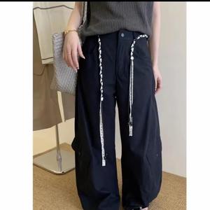时尚潮流白色工装裤女秋季美式辣妹休闲裤宽松百搭拖地裤子