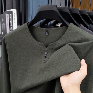 爆款磨毛工艺高品质男士T袖手感好 性价比高男士长袖剪刀领三粒扣