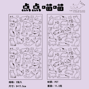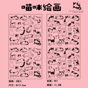语闲pet贴纸 线喵贴贴 可爱猫咪图案防水素材手帐水杯卡片diy装饰