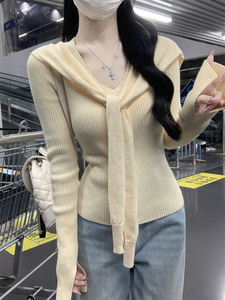 含羊毛薄款毛衫秋季韩版披肩可拆卸针织衫V领长袖修身打底上衣女