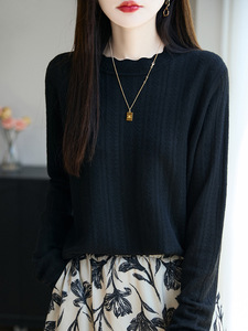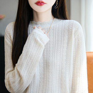 秋冬季新款精纺羊毛内搭毛衣打底衫高级感蕾丝提花花边领针织衫女