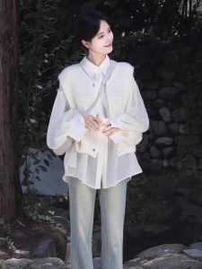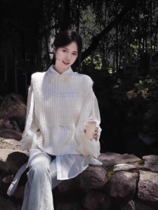 设计感短款灰色针织马甲女春秋复古外搭叠穿坎肩毛衣背心无袖上衣