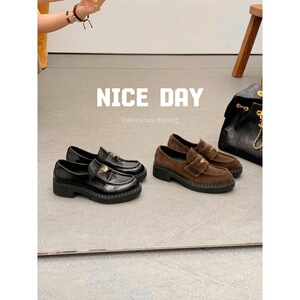 牛皮~嘉力达女鞋厚底增高5cm小皮鞋女贵气小金币一脚蹬懒人乐福鞋