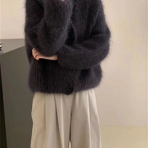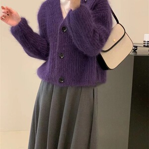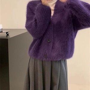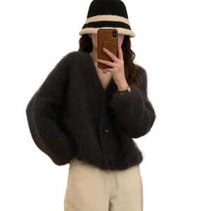 日系温柔风v领长袖毛衣外套软糯仿貂绒针织开衫通勤休闲短款上衣