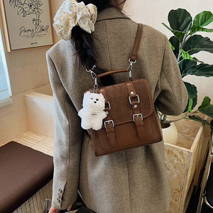 高级感学院风双肩包包女秋冬新款复古磨砂高级感多用迷你背包跨境