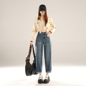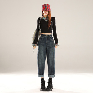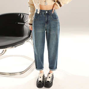 高腰大码老爹牛仔裤女2025秋冬胖mm高腰显瘦宽松微胖哈伦牛仔裤子