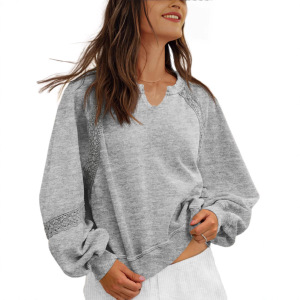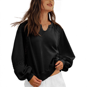 欧美跨境2025V领个性蕾丝边设计T恤女上衣