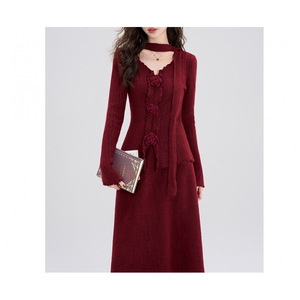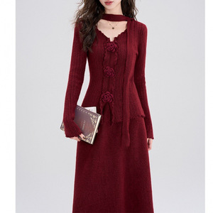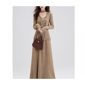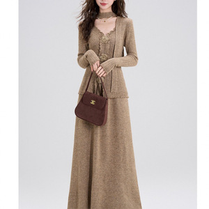时尚修身韩系氛围感穿搭针织连衣裙女2025早秋季新款气质搭配一整