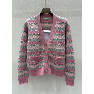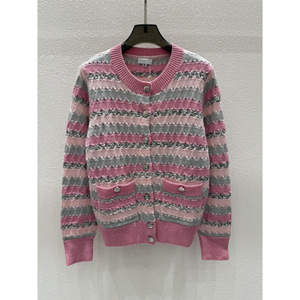 深圳南油货~高版本2025早秋新款重工钉珠短款圆领女式毛衣衫