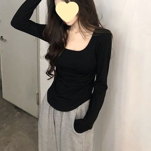 300方领上衣内搭斤大码胖mm秋季女装长袖新款遮t恤肚子打底衫正肩