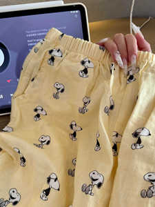 卡通史努比黄色宽松睡裤女2025春秋季大码亲肤宽松休闲直筒家居裤