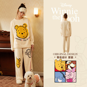 润妈【蓄热型】联名款噗噗熊秋冬半边绒睡衣女保暖可爱卡通家居服