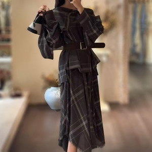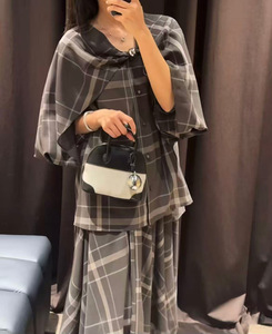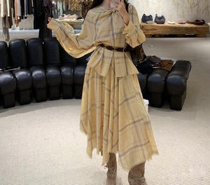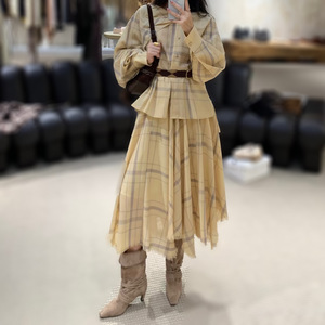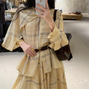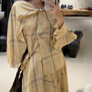 2025早秋韩系长袖格子衬衫设计感上衣+半裙薄荷曼波风穿搭