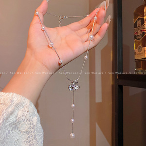 长款流苏花朵珍珠项链女轻奢小众设计高级感锁骨链气质独特配饰品