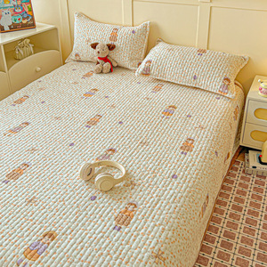 新款牛奶绒床盖单件加厚珊瑚绒榻榻米绗缝床单三件套保暖双人炕单